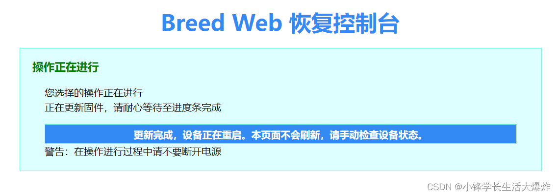 观察路由器的灯,如果等了一段时间,发现路由器无限重启,或者进不去系统,可以回到步骤1,重新刷入之前能用的固件即可。